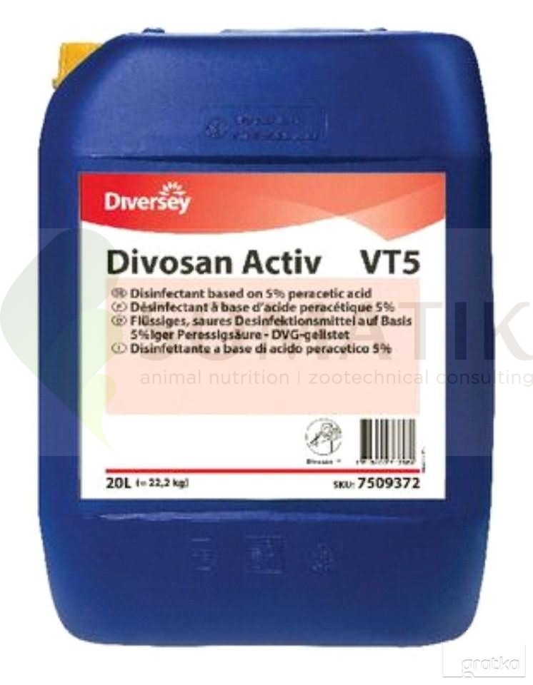 Divosan Activ 20 L to profesjonalny preparat dezynfekcyjny w formie koncentratu, opracowany na bazie stabilizowanego kwasu nadoctowego. Produkt przeznaczony jest do dezynfekcji powierzchni oraz wody procesowej mającej kontakt z żywnością w przemyśle spożywczym, farmaceutycznym, kosmetycznym, a także w pieczarkarniach i szklarniach.