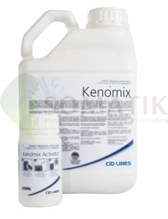 Kenomix Foam 20L (CID Lines) to profesjonalny przedudojowy piankowy dip, który skutecznie myje i dezynfekuje strzyki przed dojem. Produkt jest dwuskładnikowy i należy go aktywować przez wymieszanie 19 L preparatu Kenomix Foam z 1 L aktywatora. Po godzinie od zmieszania pianka jest gotowa do użycia i pozostaje aktywna przez 26 dni.
