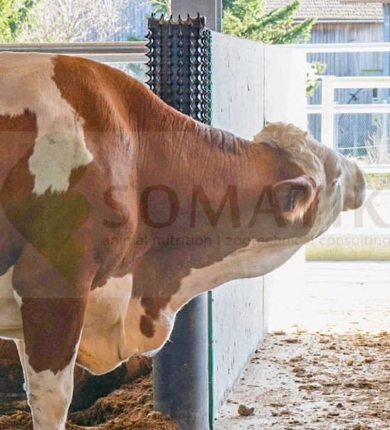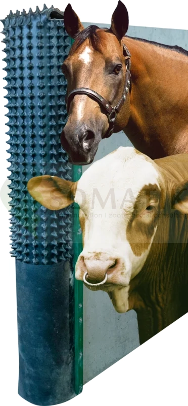 wystarczająca liczba mat do drapania może pomóc znacznie zmniejszyć poziom stresu w oborze i stajni. Dolna część maty jest pozbawiona wypustek, aby chronić nogi i zakrywa dolną krawędź betonu.
