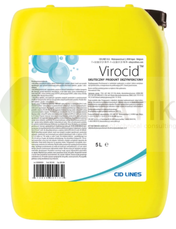 Virocid (CID Lines) to zaawansowany dezynfektant o szerokim spektrum działania, zaprojektowany do skutecznej dezynfekcji powierzchni, sprzętu, budynków inwentarskich, transportu zwierząt oraz pomieszczeń hodowlanych. Preparat łączy kilka składników aktywnych (m.in. związki czwartorzędowe, glutaraldehyd, alkohol) dla synergistycznego działania.
